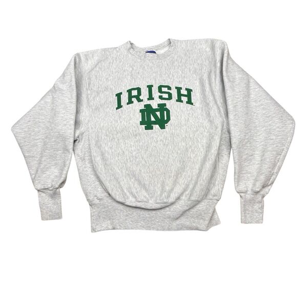 Vintage 90s Medium Notre Dame Irish Champion Reverse Weave Gray Sweatshirt