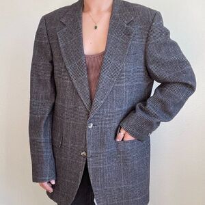 Vintage 90s Mens Bill Blass Plaid 100% Camel Hair Soft Sport Coat Blazer Sz L
