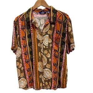 Vintage 1990s Men's D.P.S. Rayon Collared Casual Tribal Graphic Button Up Short Sleeve Shirt