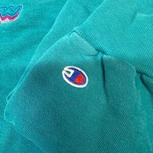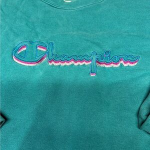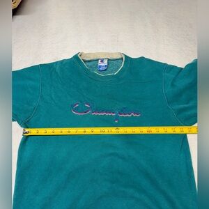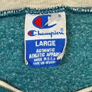 Vintage 90s Men’s Large Teal Champion Spell Out Crewneck Sweatshirt Made In USA