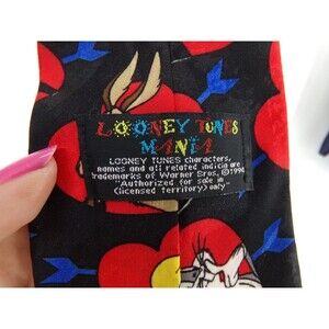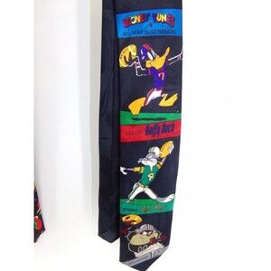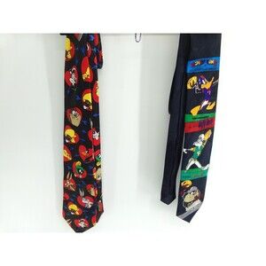 Add some vintage charm to your wardrobe with this lot of two Looney Tunes neck ties. These ties feature popular characters like Donald Duck, Bugs Bunny, and Taz, making them a fun addition to any outfit. The ties are made of polyester and have a pointed style, with a classic length of 57-60 inches and a width of classic size. The multicolor ties are perfect for any Looney Tunes fan and are sure to make a statement. These ties are perfect for adding some personality to your formal wear or even just as a fun accessory. Don't miss out on the chance to own these unique and playful ties.
