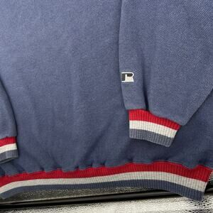 Vintage 90s Men's Navy Blue Red White Russell Athletic Textured Crewneck Sweatshirt XL