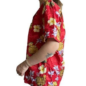 Vintage 90s Mens Royal Creations Hawaiian Floral Tropical Tiki Button Down Sz M