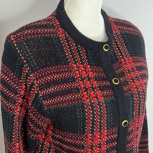 Vintage 90s Metallic Weave Old Money Preppy Plaid Button Up Cardigan Sweater