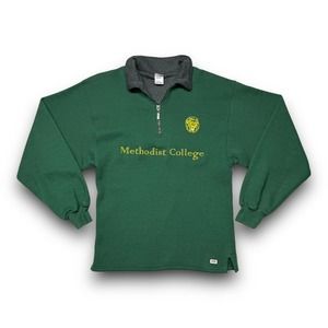 Vintage 90s Methodist College University Green 1/4 Zip Sweatshirt