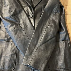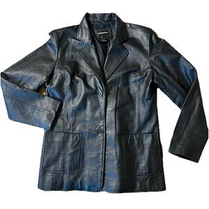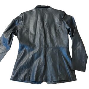 Vintage 90s Metro Style Leather Blazer Black Jacket 16 Tall Classic Minimalist