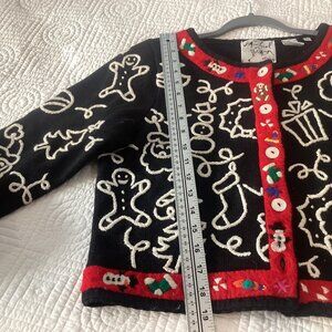 Vintage 90s Michael Simon Petite Size P Christmas Cardigan Sweater With Embroide