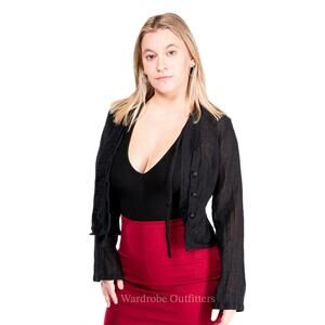 Vintage 90s Michel Klein Sheer Black Linen Blouse