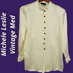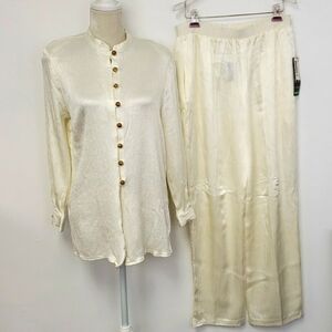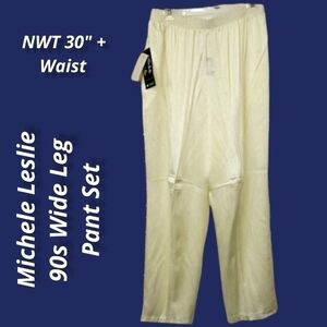 Vintage Michele Leslie of California Wide Leg Ivory Satin Dressy Pant Suit