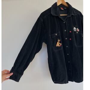 Vintage 90's Mickey Unlimited Black Wale Cord Shirt / Sz S / Embroidery Disney