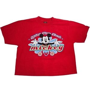 Vintage 90s Mickey Unlimited Crop Red Mickey Tee-Shirt Size Medium Women's T36