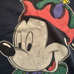 Vintage 90s Mickey Unlimited Mouse Character T-Shirt - Size X-Large (Estimate, Size Tag Faded, No Print Visible), Measures p2p=23" Length=29" - Excellent Condition, Cracking On Print (Pictured) - Navy Blue Color Shirt