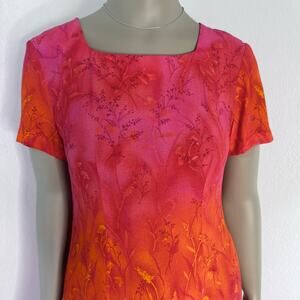 Vintage 90s Midi Tropical Sunset Ombre Dress R.J. & Co Size 10 Short Sleeve. A few stitching flaws see photos