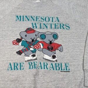 Vintage 90s "Minnesota Winters Are Bearable" Gray Sweatshirt Cute Koala Bears