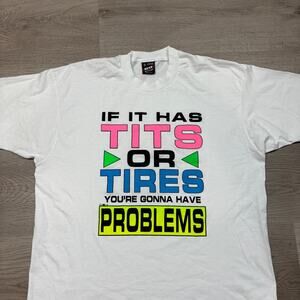 Vintage 90s Misogyny Core T*ts or Tires Gonna Have Problems Shirt Men's XL