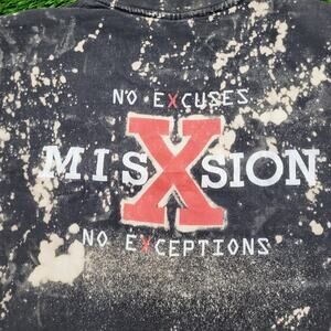 Retro Mission X bleach tee with “No Excuses No Exceptions” motto – bold 90s graphic with major attitude