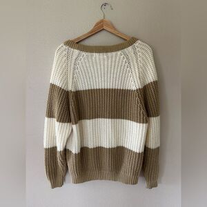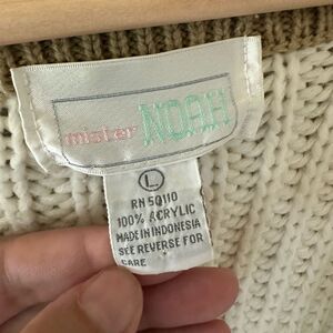 Vintage 90’s Mister Noah Tan And White Chunky Knit Cardigan Sweater Size L