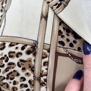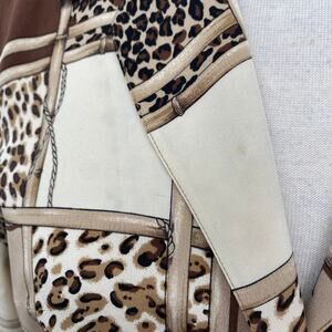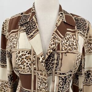 Vintage 90s Mixed Animal Print Silk Blazer Jacket Button Down Beige Womens 8