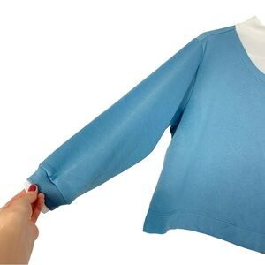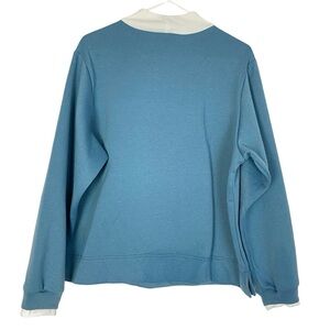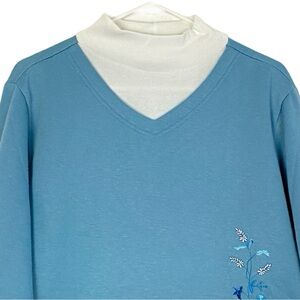 Vintage 90s Mockneck Sweatshirt Pullover Womens Size Large Blue Embroidered