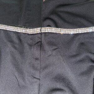 This vintage Moda International pants is a must-have for anyone who loves the glam rock look. The black polyester material drapes beautifully and the low rise design is perfect for any occasion. The jewelry waist band adds a touch of elegance and uniqueness to the piece.