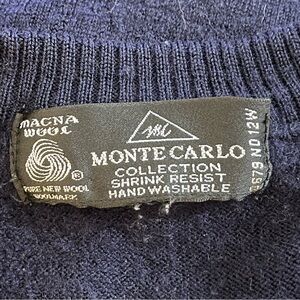 Vintage 90s Monte Carlo Argyle Knit V-Neck Sweater Dark Navy