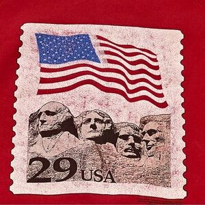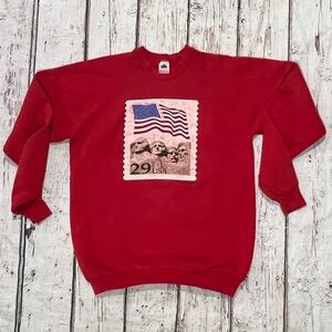 Vintage 90s Mount Rushmore 29 Cent USA Stamp 1991 Red Crewneck Sweatshirt