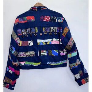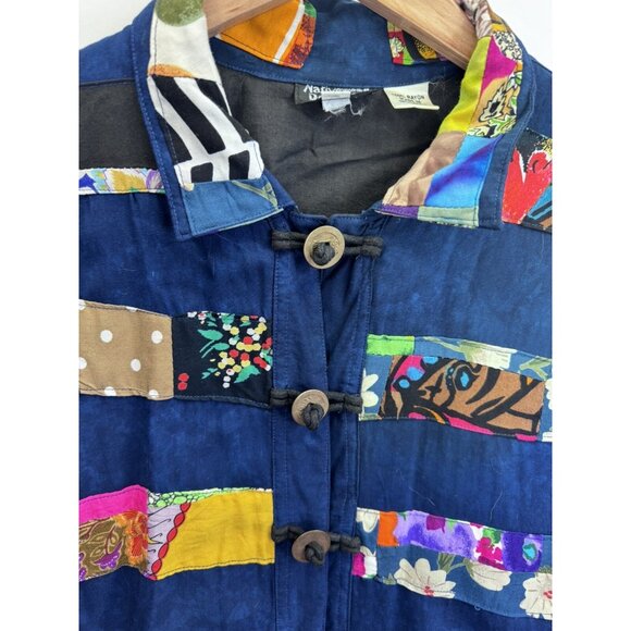Vintage 90's NATIVEWEAR DESIGNS Patchwork Navy Blue Rayon Jacket Size Medium
