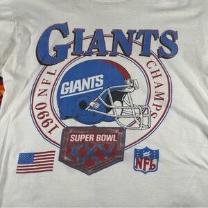 Vintage 90s NFL Super Bowl XXV Giants vs Bills SS T Shirt Large White Football. Some light stains/marks and a few pin holes. 26” Length 20” Waist 20” Pit to pit 7” Sleeves 9.5” Collar