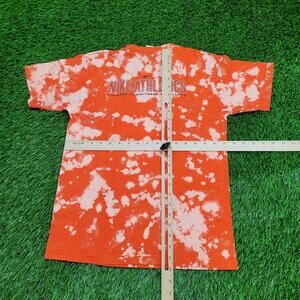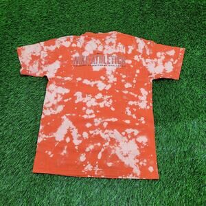 Vintage 90s Nike Athletics T-shirt, tie-dye bleached orange, size S/M, made in the USA. Rare retro streetwear with a bold design!