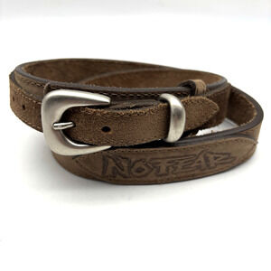 Vintage 90s NO FEAR 8641C Brown Genuine Leather Logo Belt 32 Handmade in Mexico