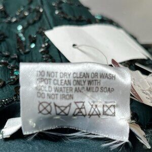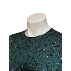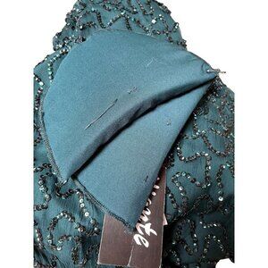 Vintage 90s NWT Beaded Sequin Soutache Cocktail Dress Emerald Green Size S/M