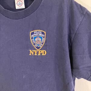 This is a high quality navy blue Delta Pro Weight tee with a New York Police Department embroidery. Good condition.