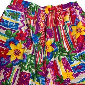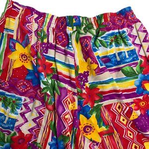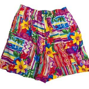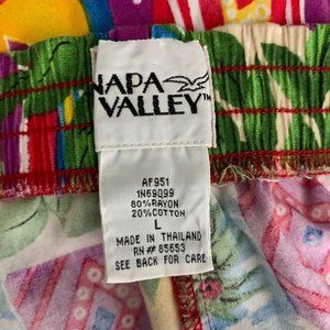 Vintage 90s Napa Valley Pullon Shorts L Red Tropical Floral Elastic Pockets