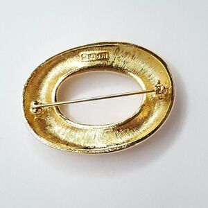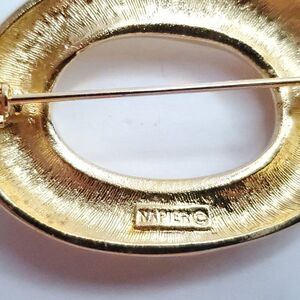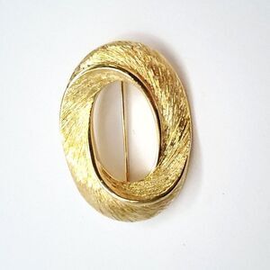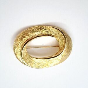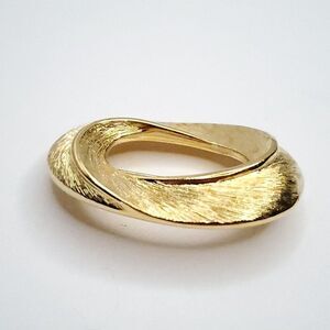 Vintage 90s Napier Brushed Oval Brooch Pin Textured Swirl Zero Goldtone