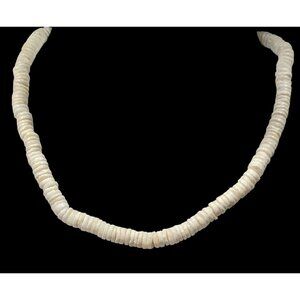 This vintage 90s puka shell necklace features natural beaded design and a comfortable stretch fit. Perfect for adding a touch of retro charm to any outfit.