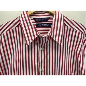Vintage 90’s Nautica Red White Striped Long Sleeve Button Shirt Size XL 46-48