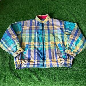 Vintage 90's Nautica Reversible Harrington Bomber Jacket Size L Madras Plaid