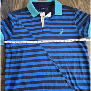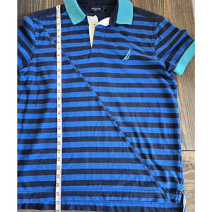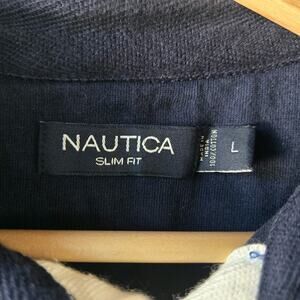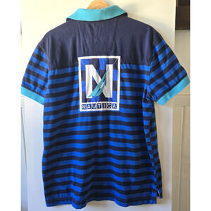 Vintage 90s Nautica Shirt Mens Large Blue Striped Rugby Polo Slim Fit Patch