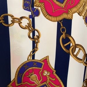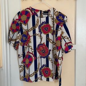 Super cute 90’s blouse! Nautical chain scarf print. Boxy fit with original shoulder pads!