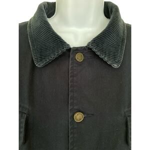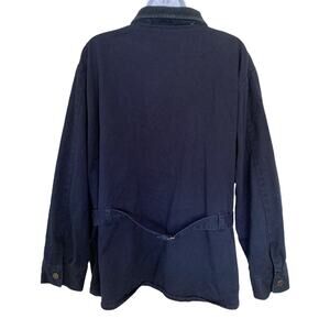 Vintage 90s 100% cotton dark navy blue corduroy collar chore coat. Flannel lined. Tagged size L. Will definitely fit smaller sizes too if you prefer a more relaxed fit. Check measurements below. In great shape. No flaws found. Questions? Please ask. All sales final. Returns are not accepted. No refunds. Thanks so much for looking.