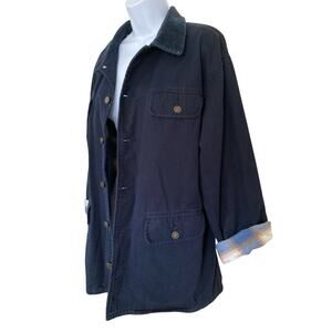 Vintage 90s Navy Blue Chore Barn Jacket Coat Flannel Lined M/L