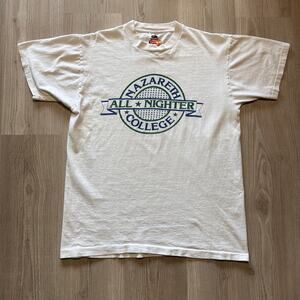Vintage 90's Nazareth College All Nighter Flyers White Blue Tee Shirt Sz Large L VTG Retro. In very good overall condition. See photos for extra details. Feel free to message me if you have any questions!