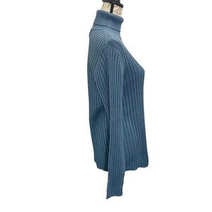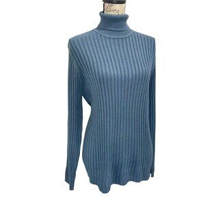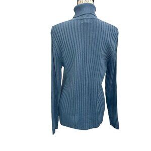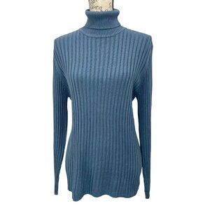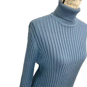 Vintage 90s Neiman Marcus 100% Silk Blue Ribbed Long Sleeve Turtleneck ; Large