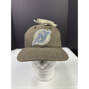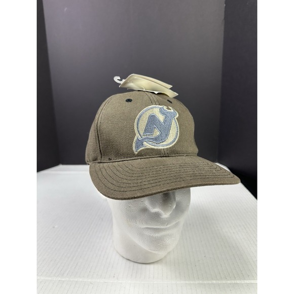 The Vintage 90s New Jersey Devils Logo NHL Hockey Annco Professional StrapBack Hat is a brown cap officially licensed by the National Hockey League (NHL). Made by Annco, this unisex adult hat features the iconic New Jersey Devils logo, making it a must-have for any hockey fan. The one-size-fits-all design ensures a comfortable and stylish fit for any game day or casual outing. Represent your favorite team with this classic piece of fan apparel that showcases your love for the sport of hockey.