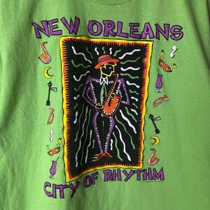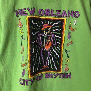 Vintage 90s New Orleans T Shirt Adult Green Large L USA Single Stitch Graphic Tee 100% Cotton Short Sleeve Solid Logo Print City of Rhythm Jazz Music