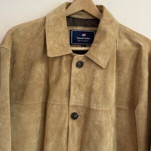 Vintage 90s Newport Harbor Suede Jacket Mens XL Beige Soft Button Up Washable