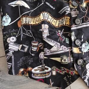Vintage 90s Nicole Miller Movie Production Actor Actress TV Film Theme Button Silk Vest