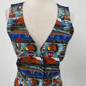 Vintage 90s Nicole Miller Silk Vest Australia Pattern Black Blue Red NEW Large