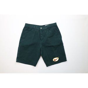Vintage 90s Nike Mens 36 Spell Out Swoosh Denim Jean Shorts Jorts Green USA