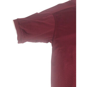 Embrace the classic appeal of a Vintage 90s Nike Men's Pullover Shirt, designed to offer both style and functionality. The iconic Nike Dri-fit technology ensures you stay cool and dry during intense workouts or casual wear. Featuring a comfortable V-neck and short sleeves, this red maroon shirt is a testament to timeless athletic fashion. Crafted from 100% polyester this breathable mesh fabric is perfect for all seasons. The shirt's lightweight design promotes easy movement, making it suitable for a wide range of activities, from basketball to cross training. Its solid color and subtle sewn swoosh logo accent provide a clean, sporty look that's difficult to miss on or off the field.